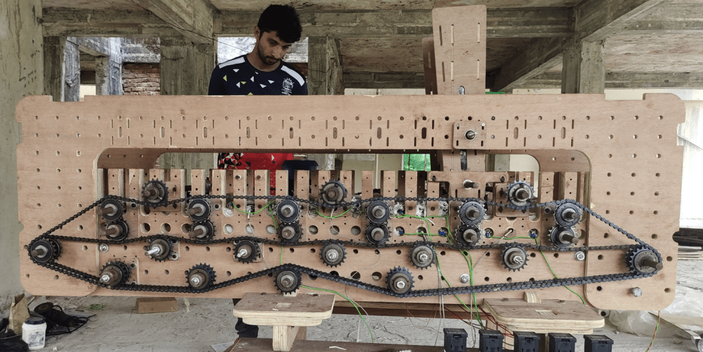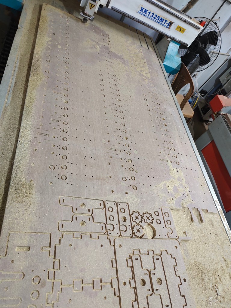 • Designing the structure of the machine using digital application, using CNC machine to cut the parts from plywood boards.