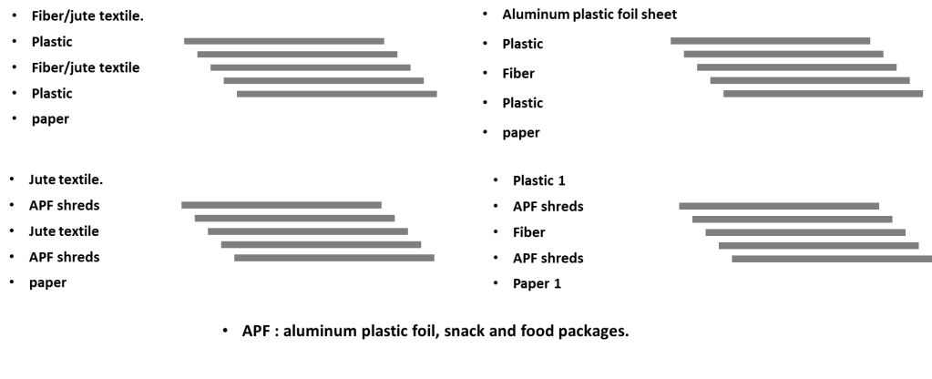 Tarpaulin, Aluminum plastic foil, food packages, Other low-grade plastic, LDPE are all considered as The Non-recyclable thermoplastic, but they can be upcycled.