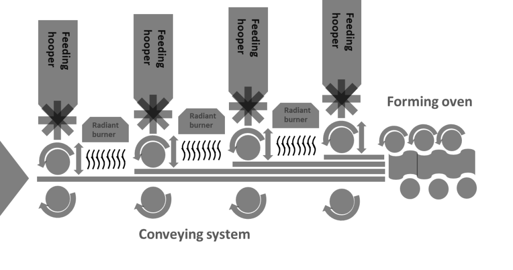 • Pressing and forming using wheeling in oven.