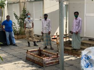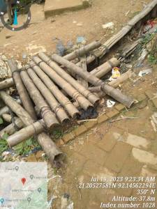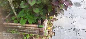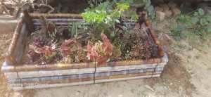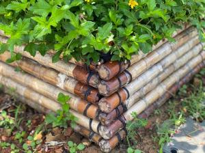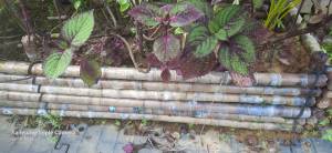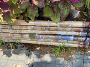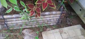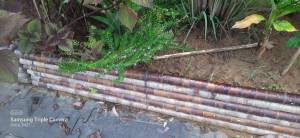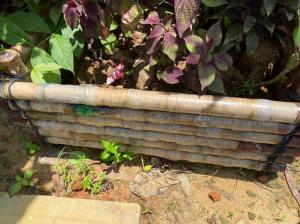 2- Flower Beds constructed in January 2022, at MahduCharah Hub, using plastic-encapsulated Mulli bamboo, each 60 mm in diameter. The laminated bamboo is in direct contact with the humid soil, plants, living organisms, and bacteria, posing a real test to its durability and resistance to biodegradation.
