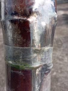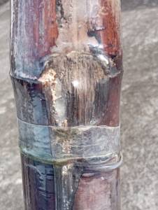 A- Corrosion: Due to termite attacks, the lifespan of untreated bamboo is 6 to 9 months when in direct contact with the soil. Outwardly, the damage may not be evident, except for a few 2mm diameter holes where termites bore into the bamboo to access the nutritious interior. Once they reach the core, termites will not vacate but instead continue to regenerate and spread inside the pole.