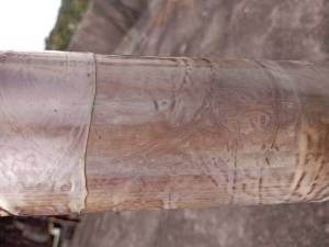 B- Cracking: when the bamboo directly exposed to the natural factors, a longitudinal cracking of bamboo caused by the difference in relative humidity between the rain and dry seasons.