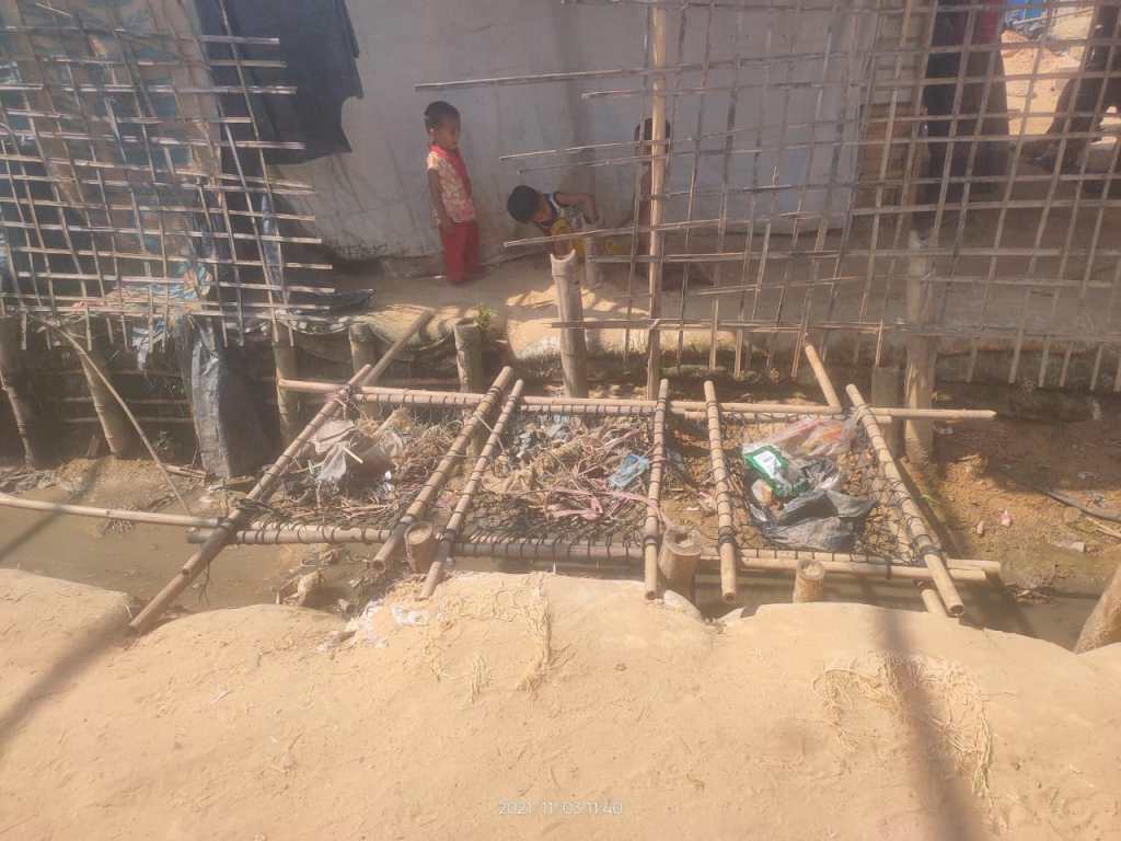 In the next gallery pictures were collected by Rohingya volunteers in January 2023, showing the empty trash bins in camps 1-2-3-4-5-6-7-8W-9 and some informal dumping points around the area, including some drains and water streams saturated with trash.