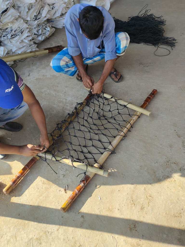 The community volunteers are skiled in making nets, when the gaps are 5*5 cm, individual can make 2 sqm in avarage per day. those baskets will eleminate the need to shovles work , when they are installed in the right point it